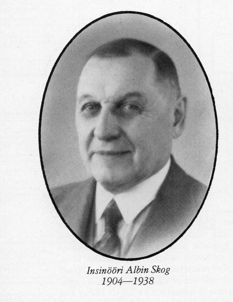 Helsingin vesijohtokonttorin johtoon vuonna 1904 tullut Albin Skog valmistui tie- ja vesirakennusalan insinööriksi Helsingin Polyteknillisestä opistosta 1890.